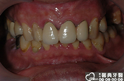 主訴︰牙周病、多顆缺牙、前牙門牙牙套變色不好看。