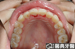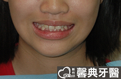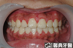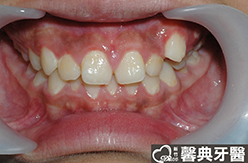 臨床發現︰上顎前牙深咬,上下顎咬合不正,多顆牙齒排列凌亂。